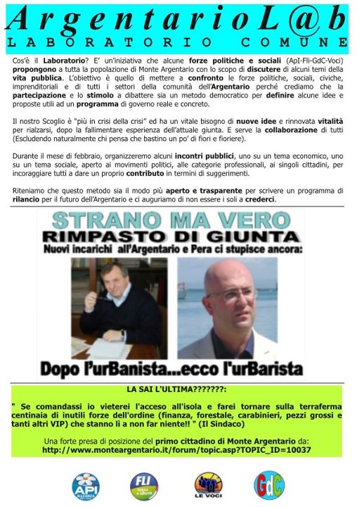 Ho visto in giro un interessante volantino intitolato Argentario Lab a firma Api FliGdC Voci. Chissà se qualcuno lo mette qui sul forum??