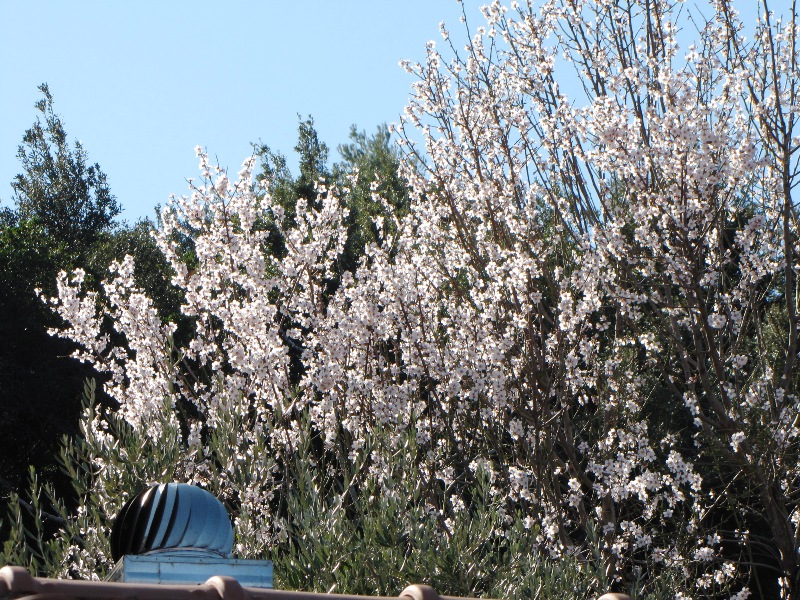 Quest'anno vedo che la fioritura dei mandorli è in ritardo di un mese, normalmente fioriscono alla fine di gennaio, quest'anno sono in fiore ora.