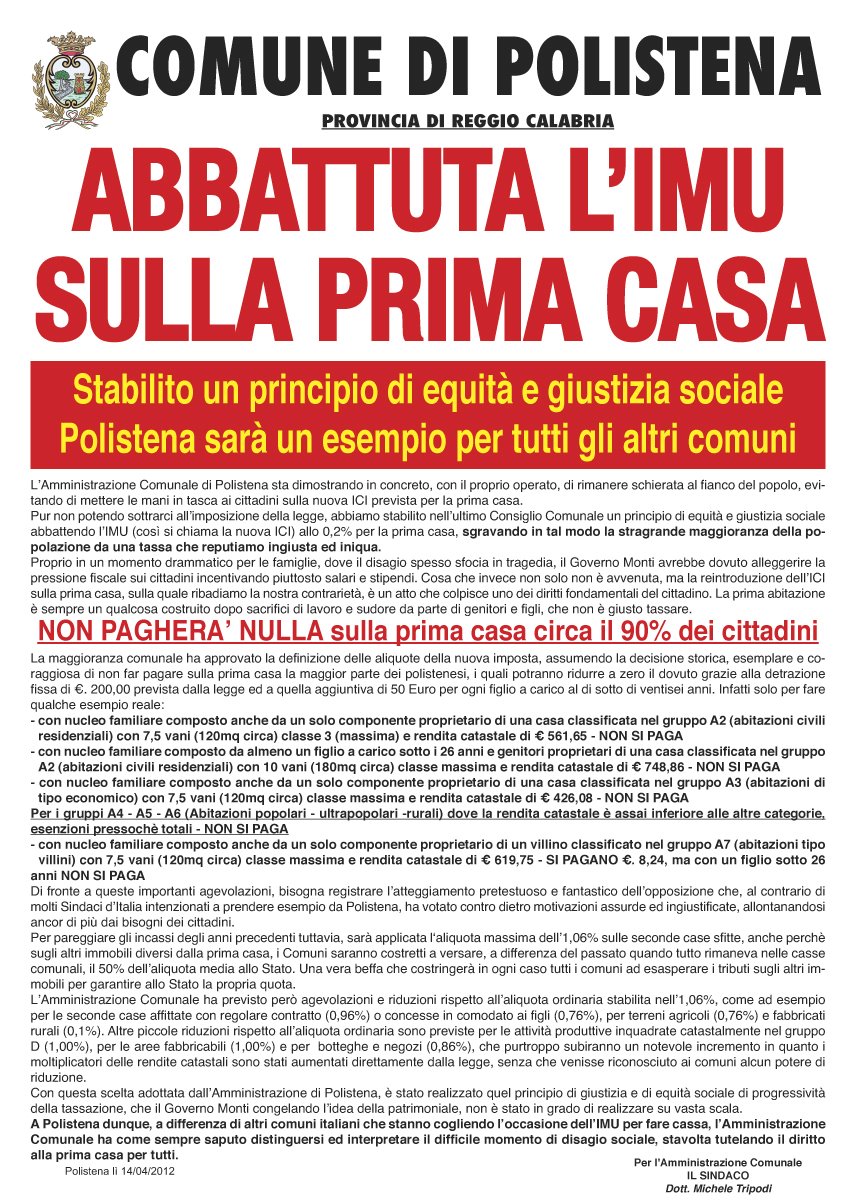 Anche in questo comune il sindaco ha deciso di abbattere l' IMU sulla prima casa!!