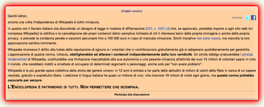 questo è l'appello di wikipedia. chi volesse partecipare alla discussione può andare sul sito di wikipedia italia.