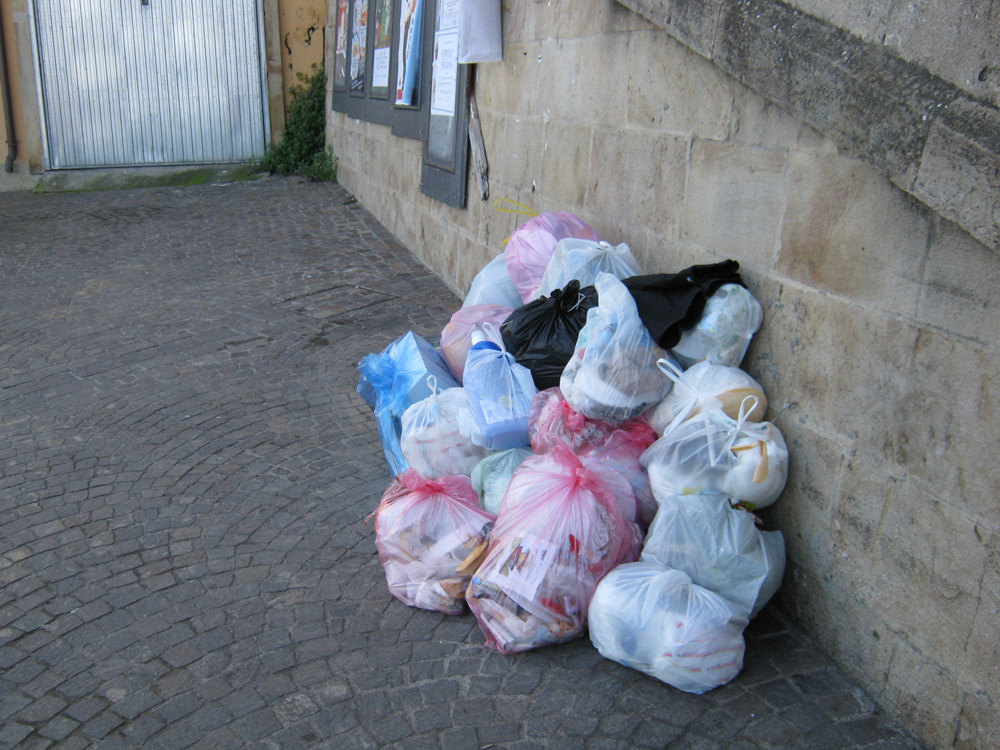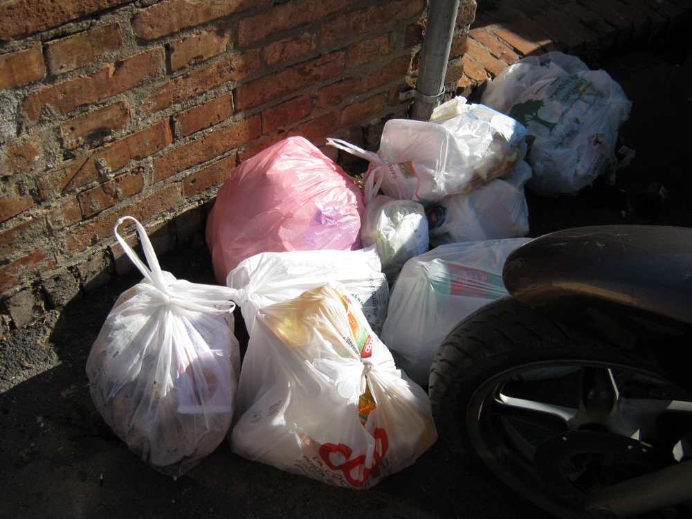 Allora, proprio in quel punto alle dieci e mezzo ho visto una passare di gran lena e fare un bel lancio sulla nuova montagna di sacchetti, lllààà!!! Non mi dite che avrei dovuto dirle qualcosa, aveva una ghigna, magari mi dava du schiaffi..però un vigile ci sarebbe stato bene!