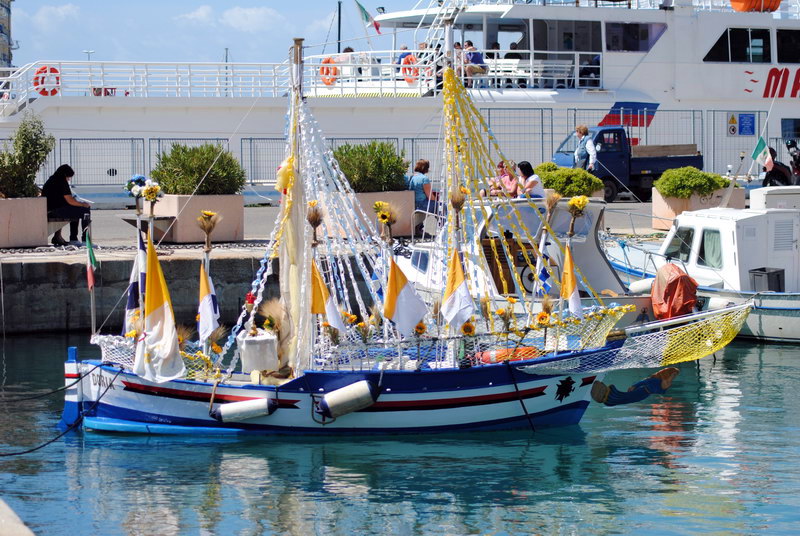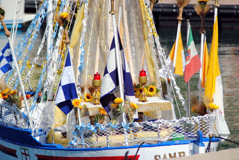 Come tutte le ricorrenze Rinaldo, proprietario della Samdoria, per Corpus Domini che viene celebrato domani, ha addobbato la sua imbarcazione.