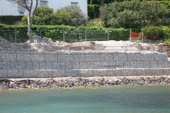 I gabbioni riempiti di inerti sono quelli con meno impatto .. sono flessibili e si adattamento a futuri cedimenti..poi conil tempo la vegetazione attecchisce nelle intercapedini.... In un certo modo meglio questo di un muraglione in c.a.