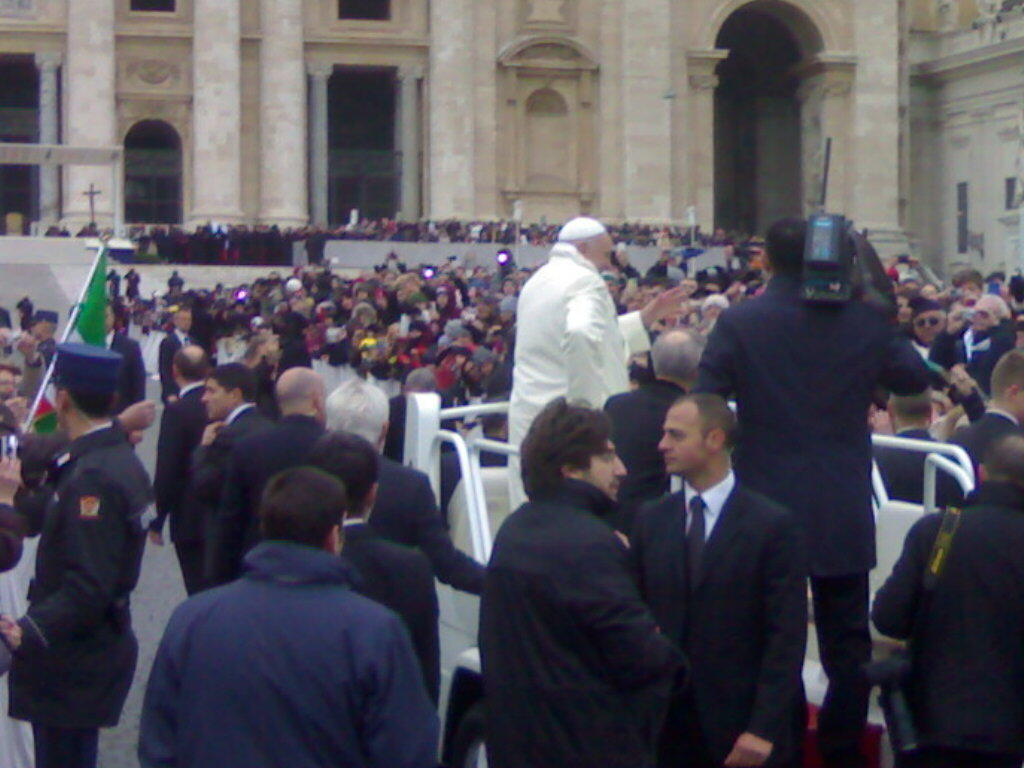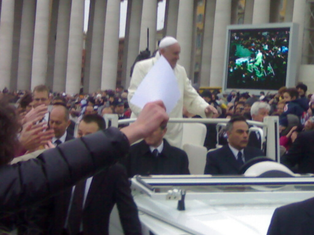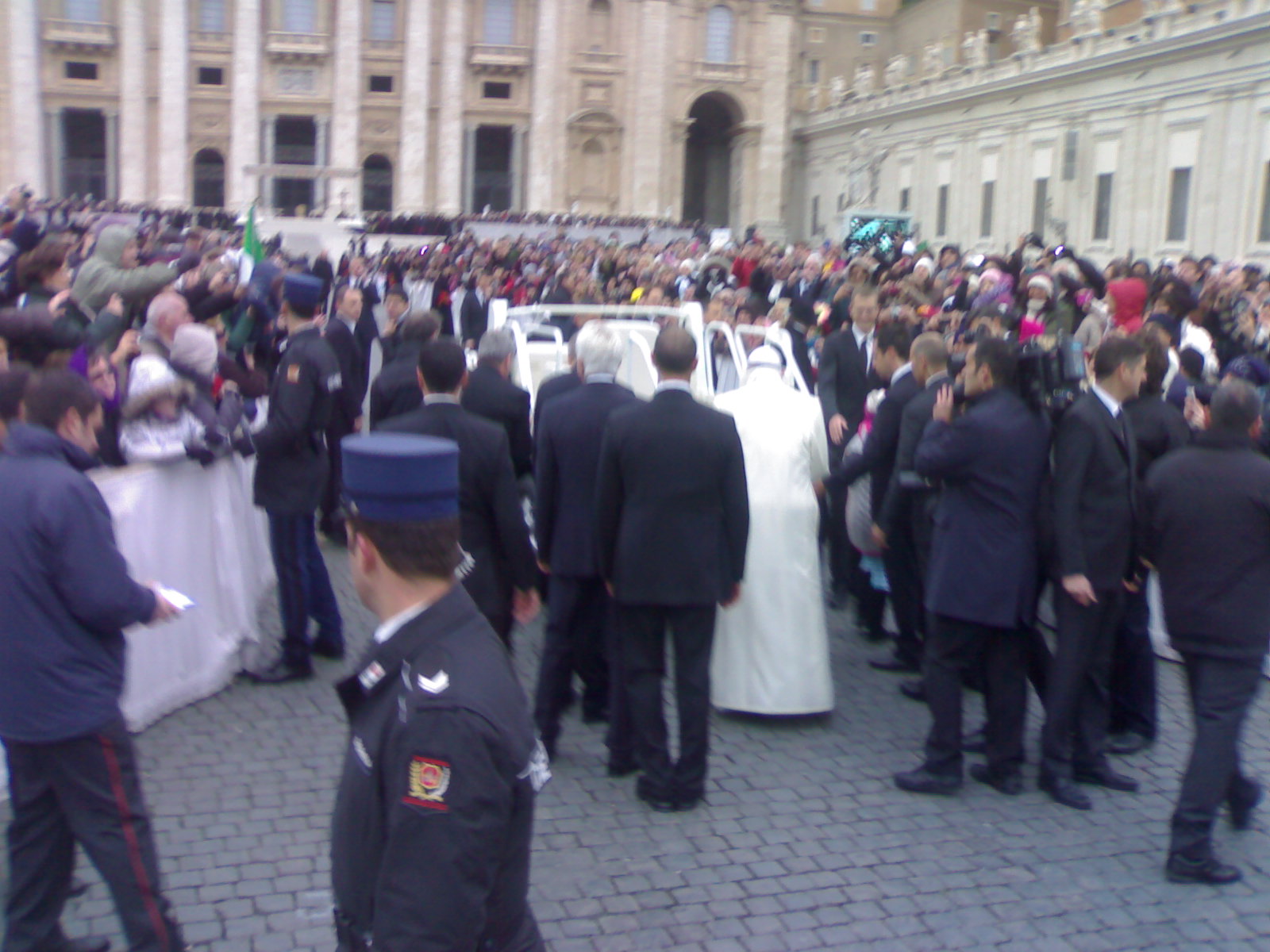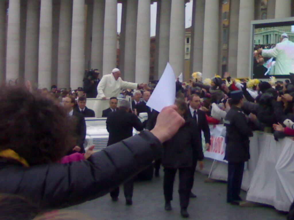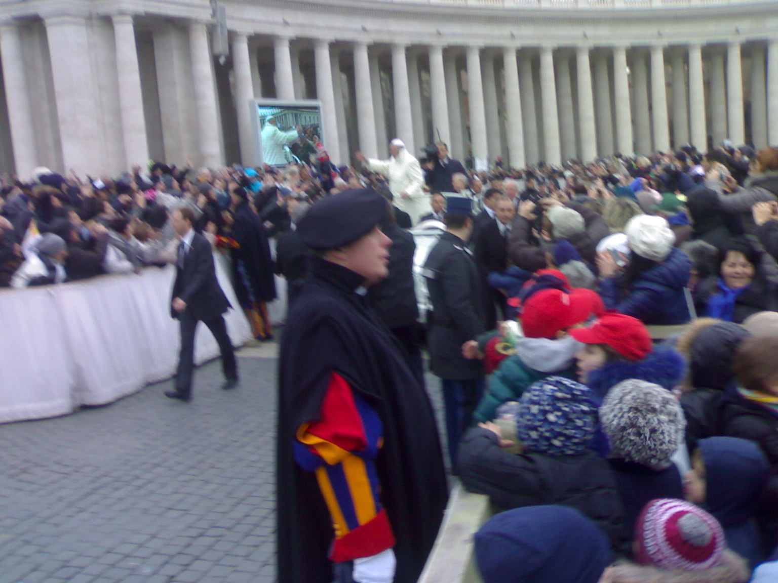 zitto va...c'avevo la macchinetta fotografica che andava bene..solo che con il freddo che faceva è andata giù la carica e non funzionava...mi è toccato falle con il telefono...    questa me l'ha mandata qualcuo...cmq ho visto le foto su facebook che pure A.C. è andato all udienza quella volta che partì un gruppo da p.s.s.