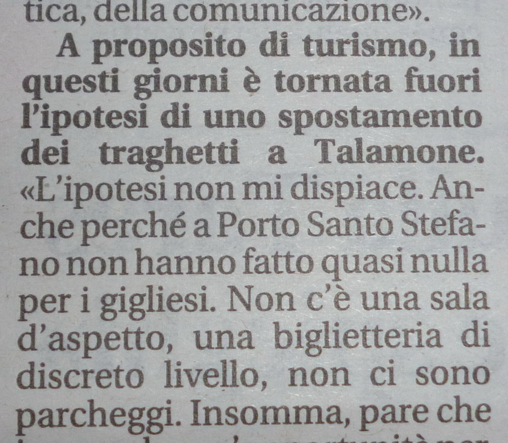 ..mi tasto se ci so'. La sala d'aspetto e le biglietterie le vuole da noi? Sì sì, andate a Talamone che è meglio!