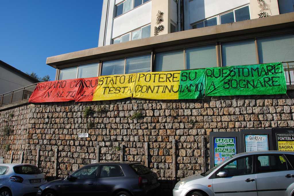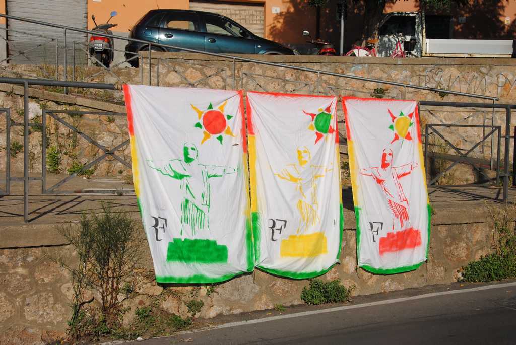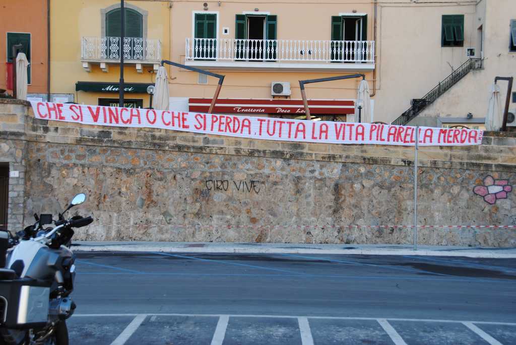 Più tardi metterò qualche foto degli striscioni, cartelli e lenzuola scritte dei vari rioni. Per primo però voglio mettere questa foto, che ripeterò anche nel forum "Io protesto" per dire che per la prima volta a memoria mia non ci sono bandiere alle aste del Lungomare e del Molo.