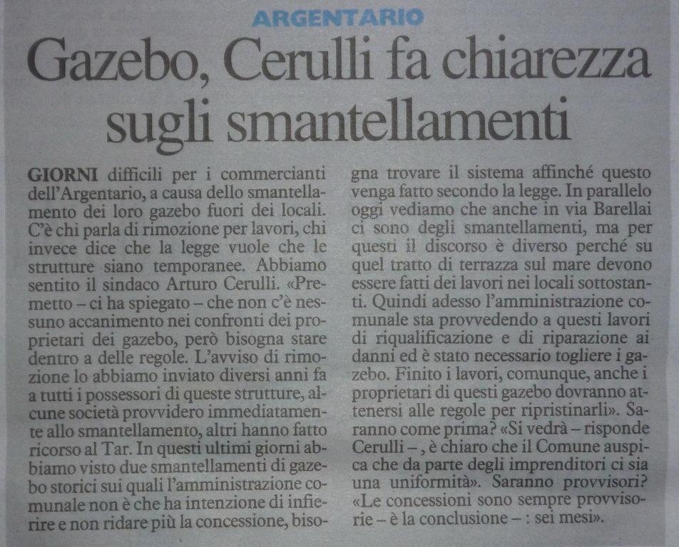 Perché non trovate una soluzione, magari facendo pagare il giusto e a quegli esercizi non li date la licenza per l'intero anno? Tanto non è che viene liberato il suolo pubblico, viene levata solo la copertura. E questo non è che comporti un beneficio per la popolazione, anzi, al contrario, credo che comporti un disagio per quegli avventori che magari nei giorni un po' più caldi dell'inverno desiderano stare all'aperto, ma chiaramente protetti da strutture.