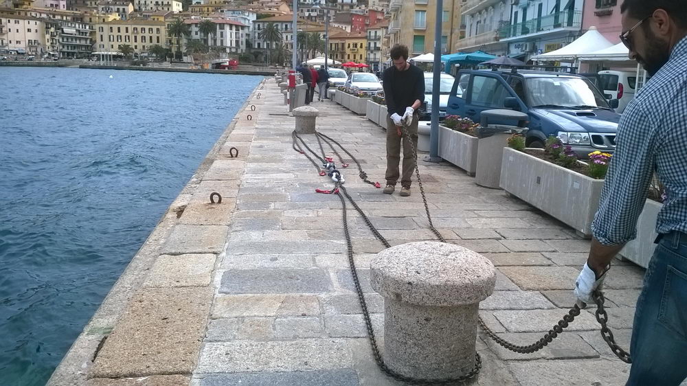 Seconda cosa, premetto che non sono ingegnere, ma qualcosina di fisica elementare ci capisco: mi si deve spiegare perché vengono fatte prove di trazione per forze parallele alla banchina, visto che solo una piccola componente della forza di un ormeggio agisce lateralmente, il resto agisce perpendicolarmente. Giusto in cavi molto sguardati viene esercitata una piccola forza laterale, tant'è che nei cavi dritti la risultante laterale è nulla.
