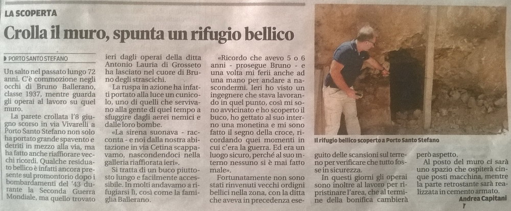 Dal Tirreno - Rinvenuto rifugio seconda guerra