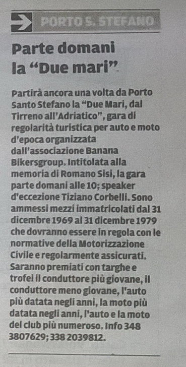 Dal Tirreno -Parte da Porto S. Stefano la due mari