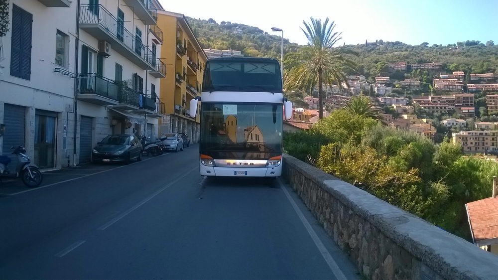 Oggi pomeriggio questo pullman è stato parcheggiato dove vedete, per più di due ore, mica dava noia eh!! ... e a me tempo fa mi hanno multato lo scooter, solo perché era fuori le strisce del parcheggio, senza che intralciava il traffico o ostruiva passaggi vari ... equità di trattamento!!