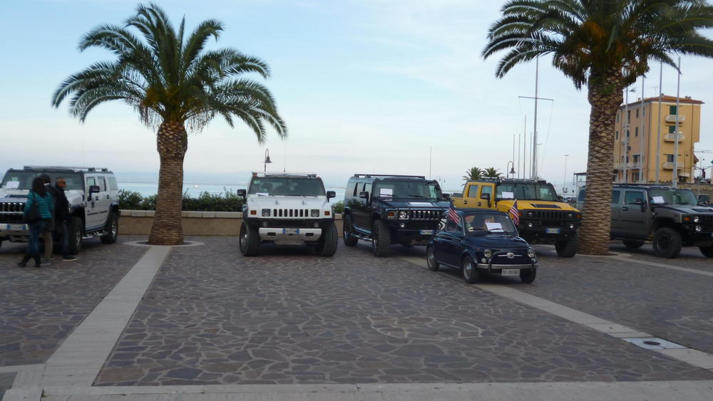Oggi in piazza c'erano in bella mostra delle macchine non certo da poveracci, delle hammer come vedete nella foto, con la cinquecento davanti.