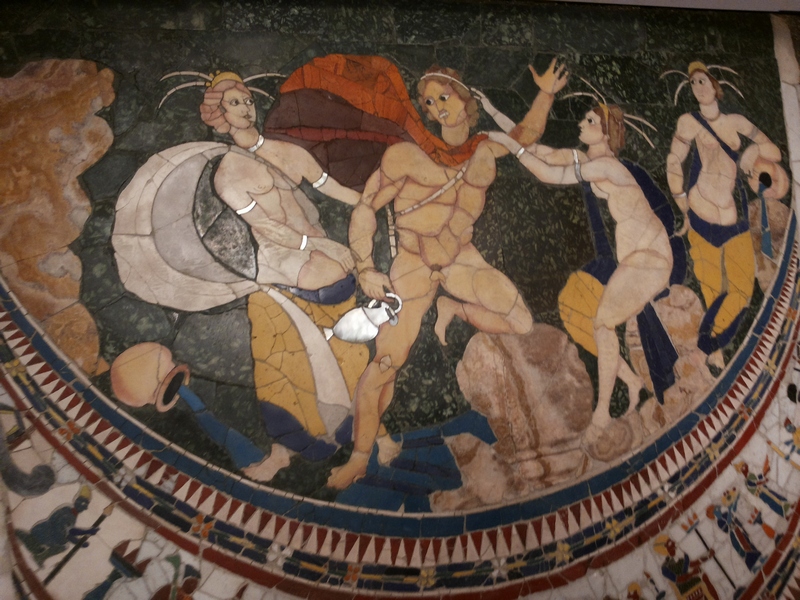 Opus sectile, cioè mosaico di marmo e madreperla raffigurante il rapimento di Hylas , l'amante di Eracle, da parte delle ninfe.
