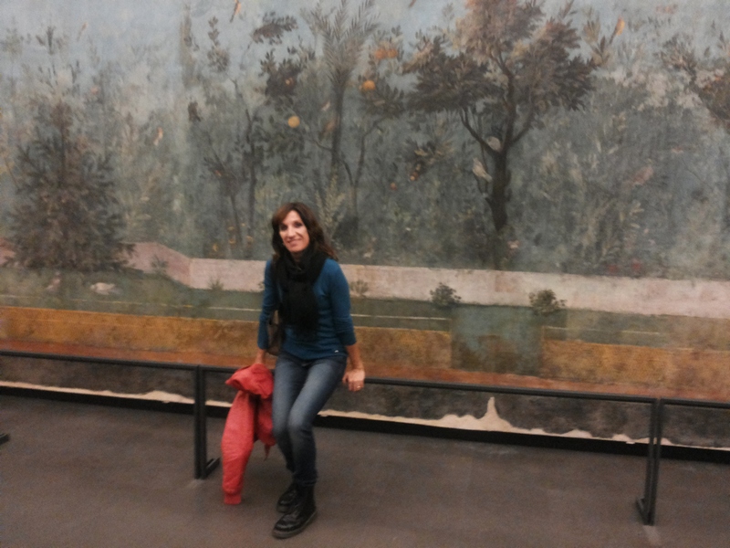 Nel giardino dipinto della villa di Livia, la moglie di Augusto, a Prima Porta. L'affresco è stato staccato e rimontato perfettamente nella sala del museo..che pazienza. E che bel lavoro!