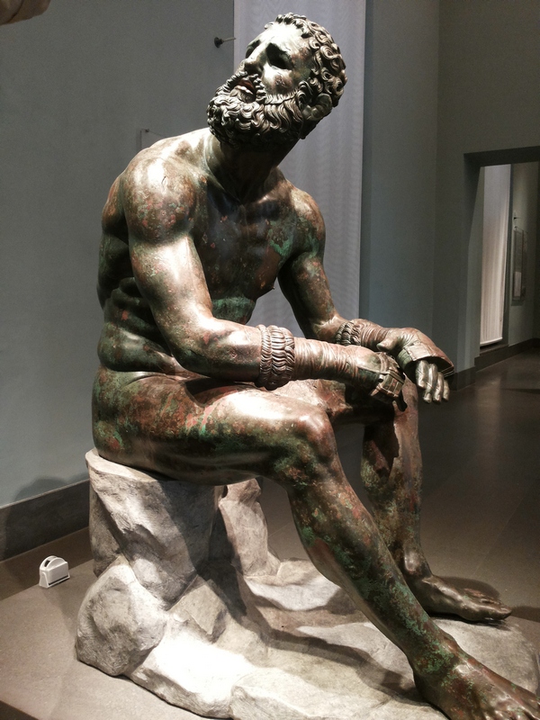Una delle cose più belle che io abbia mai visto...La statua bronzea del Pugile in riposo, conosciuta anche come Pugile delle Terme o Pugile del Quirinale, è una scultura greca alta 128 cm, datata alla seconda metà del IV secolo a.C. e attribuita a Lisippo o alla sua immediata cerchia; sembra vivo.. ti guarda con quel viso pieno di cicatrici e vedi che è stanco, molto stanco...