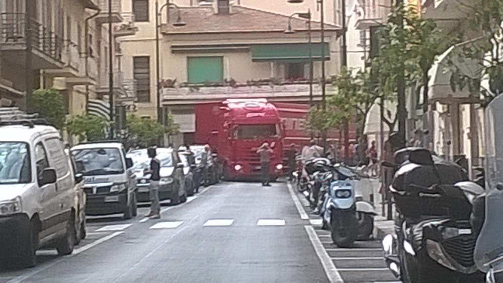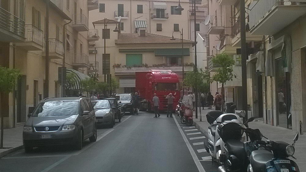 Oggi un camion non è riuscito a girare in via Roma, hanno dovuto spostare tre o quattro motorini dal parcheggio, perché sennò era ancora lì ... grandi gli ingegneri che hanno progettato la via...