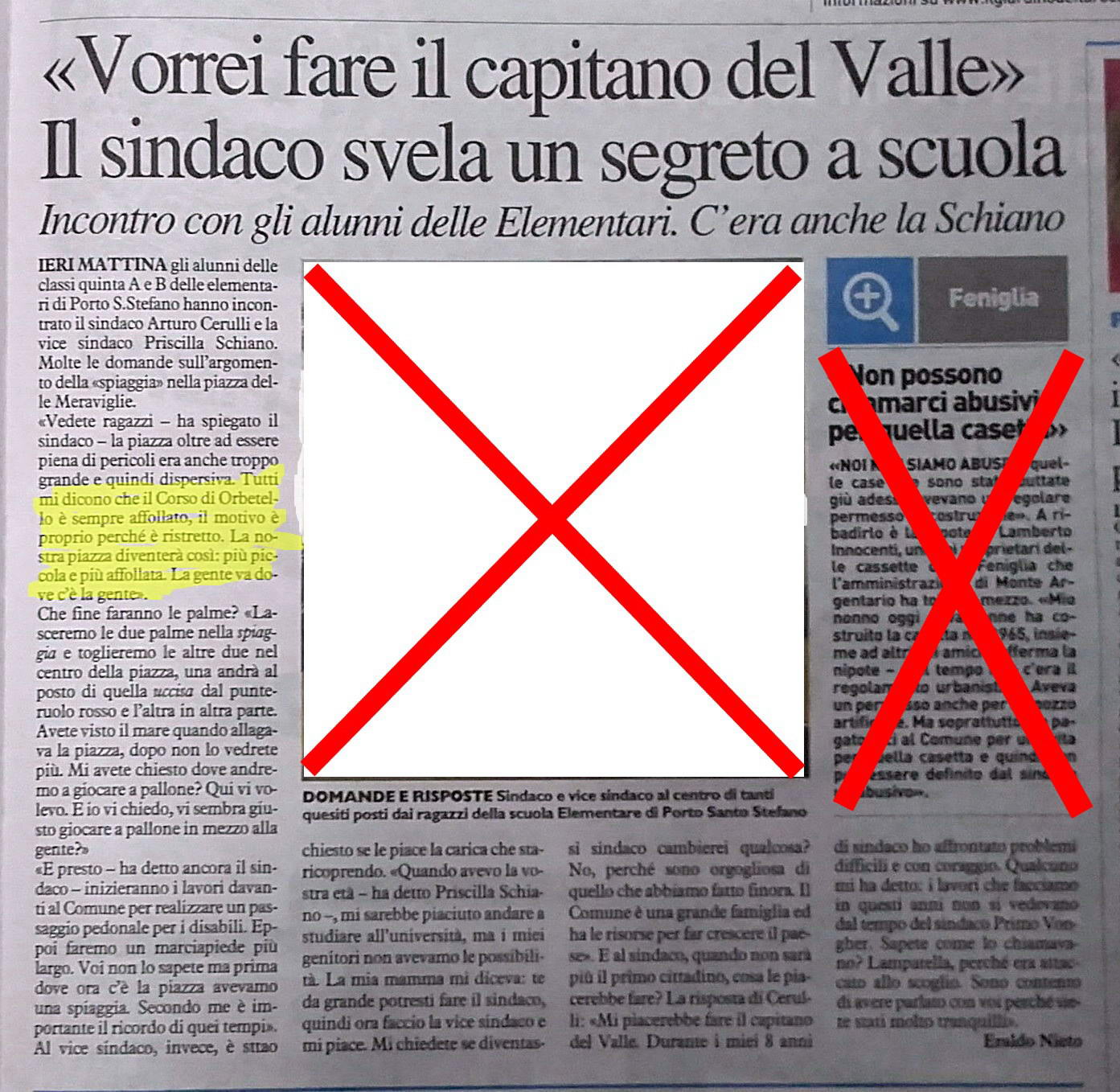 Con la piazza più piccola se viene troppa gente.......poi va rifatta più grande. Il Corso a Orbetello, viene sfruttato come attrazione con il Carnevale o Gustatus o altre iniziative. Ma spiaggia che verrà costruita in piazza sarà zona balneabile o no?