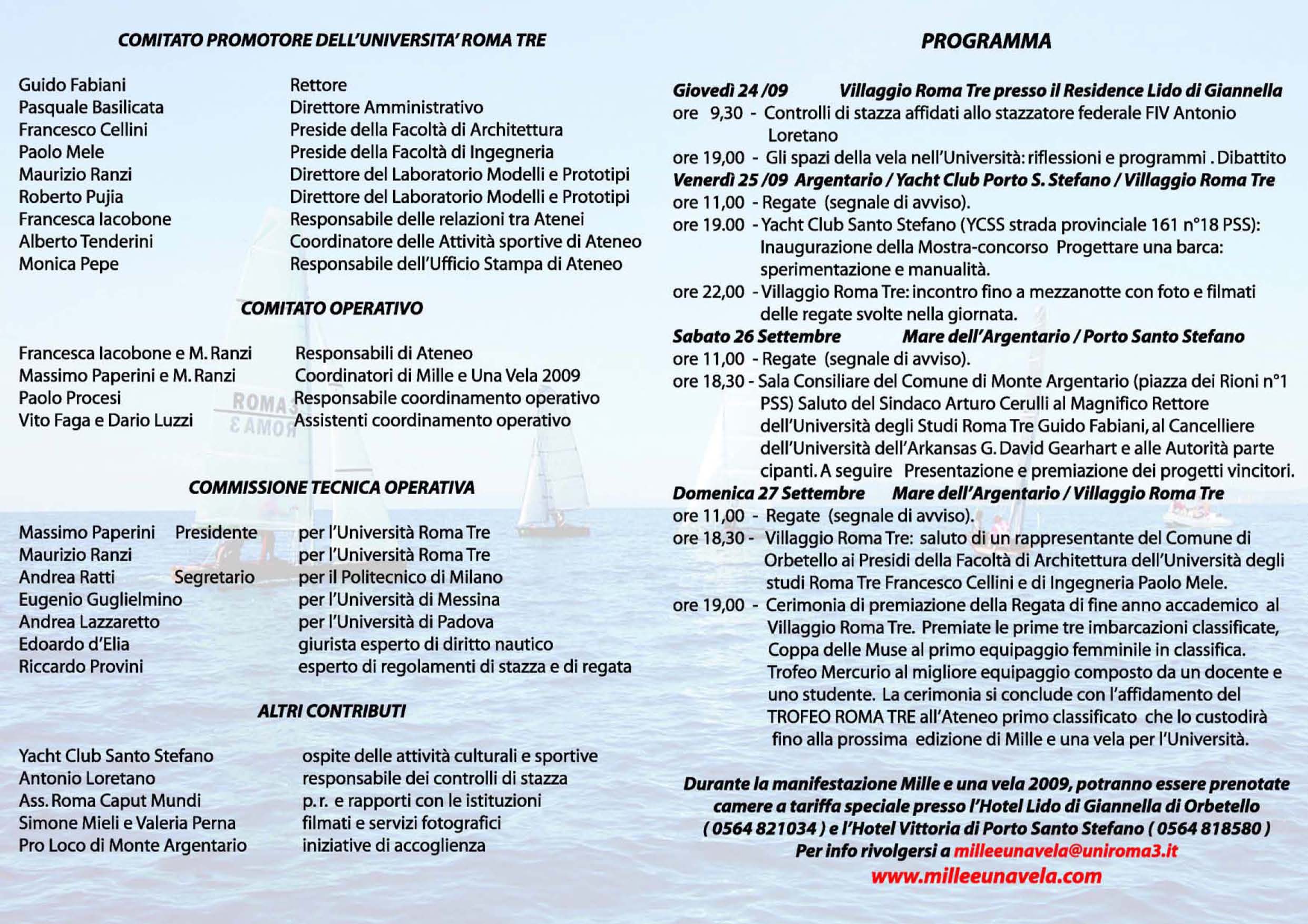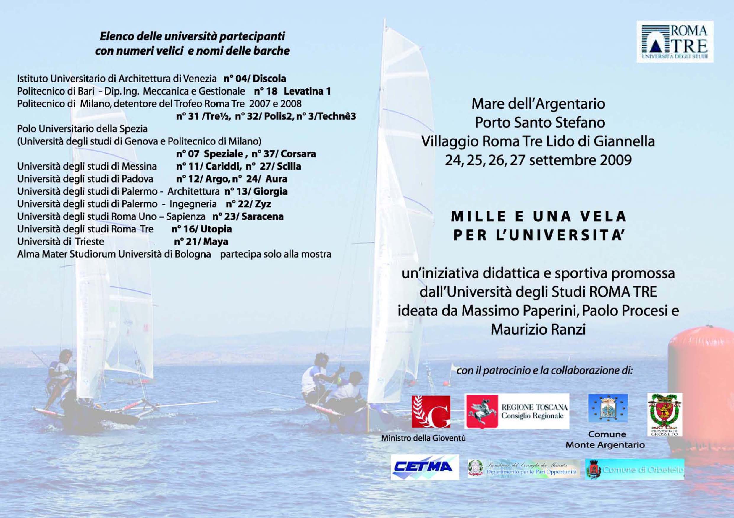 Ho aspettato un po' per prudenza, e tutt'ora sono nell'insicurezza ma: alcuni giorni fa leggevo in cronaca locale che tra il 24 e il 27 settembre iniziava la 4 giorni di "mille e una vela per l'università".