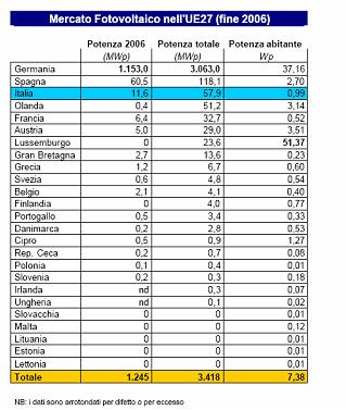 Per quanto concerne l’Europa dobbiamo registrare un nuovo record nelle installazioni in Germania: circa 1.150 MW di potenza. Il totale della potenza fotovoltaica installata in Germania a fine 2006 è stato di 3.036 MW. Il governo Merkel sta ripensando, al ribasso, gli importi delle tariffe incentivanti al fotovoltaico. Vedremo, allora, nei prossimi mesi come si evolverà il mercato del paese leader del settore.