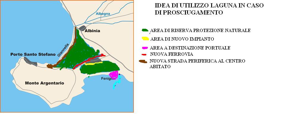 no.. io stavo pensando diversamente... sul lato vicino alla feniglia, ho pensato che si potrebbe prolungare (rendere più larga) la duna della feniglia... e anche lì... c'è da fare una bella pulizia come la strada degli orti.... nella zona vicino a Orbetello, ho pensato ad una urbanizzazione....con case, casette...parcheggi,parchi, palestre... e...dulcis in fondo.... spuntano fuori gli spauracchi de il "porto turistico di Orbetello" e la stazione ferroviaria dell Argentario oltra che ad una strada periferica per raggiungere la stazione dall Argentario senza necessariamente attraversare tutto il paese di Orbetello!!!!