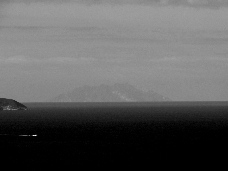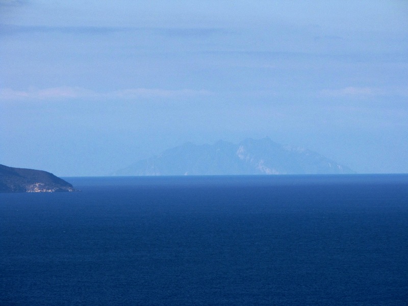 Si sa che le foto panoramiche e da lontano fatte con macchinette giocattolo, non rendono l'idea, ma guardate dietro Montecristo oggi come si vedeva la corsica...